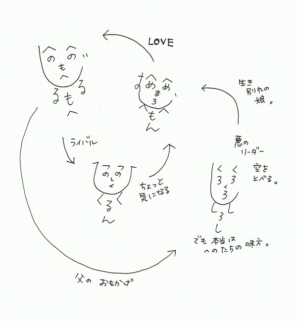 へのへのファミリー、青蛙さまもやったことが!? これってけっこうみんな考えるんですかね。当時友人にバカにされたモノですが。ふふ、みんな仲間だ……! やっぱりヒロイン系の目は「め」ですよね。私のも早村さまのも青蛙さまのもそこは一緒だ(笑