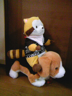 目が合ったので、うちのラスカル(ぬいぐるみ)のエプロンを新調することを誓います。
